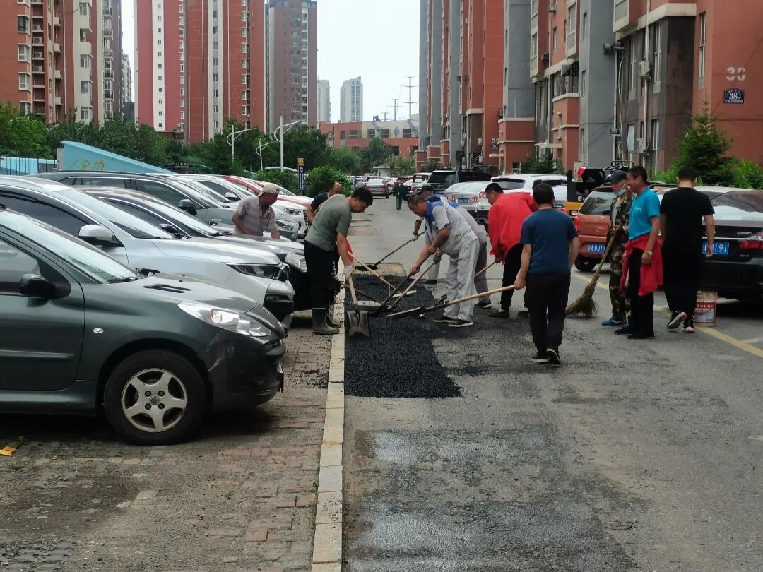 情系業(yè)主,做實事,趕班加點修路面,福臨家園小區(qū)路面經(jīng)過12年的使用,部分路段已破損,特別北區(qū)尤為嚴(yán)重,為了不影響正常出行,公司購買了35立方面料,在趙小丹、巴特組織下,于2021年6月14日(端午節(jié))對破損路面進行修復(fù),現(xiàn)已具備正常出行條件,受到業(yè)主好評。